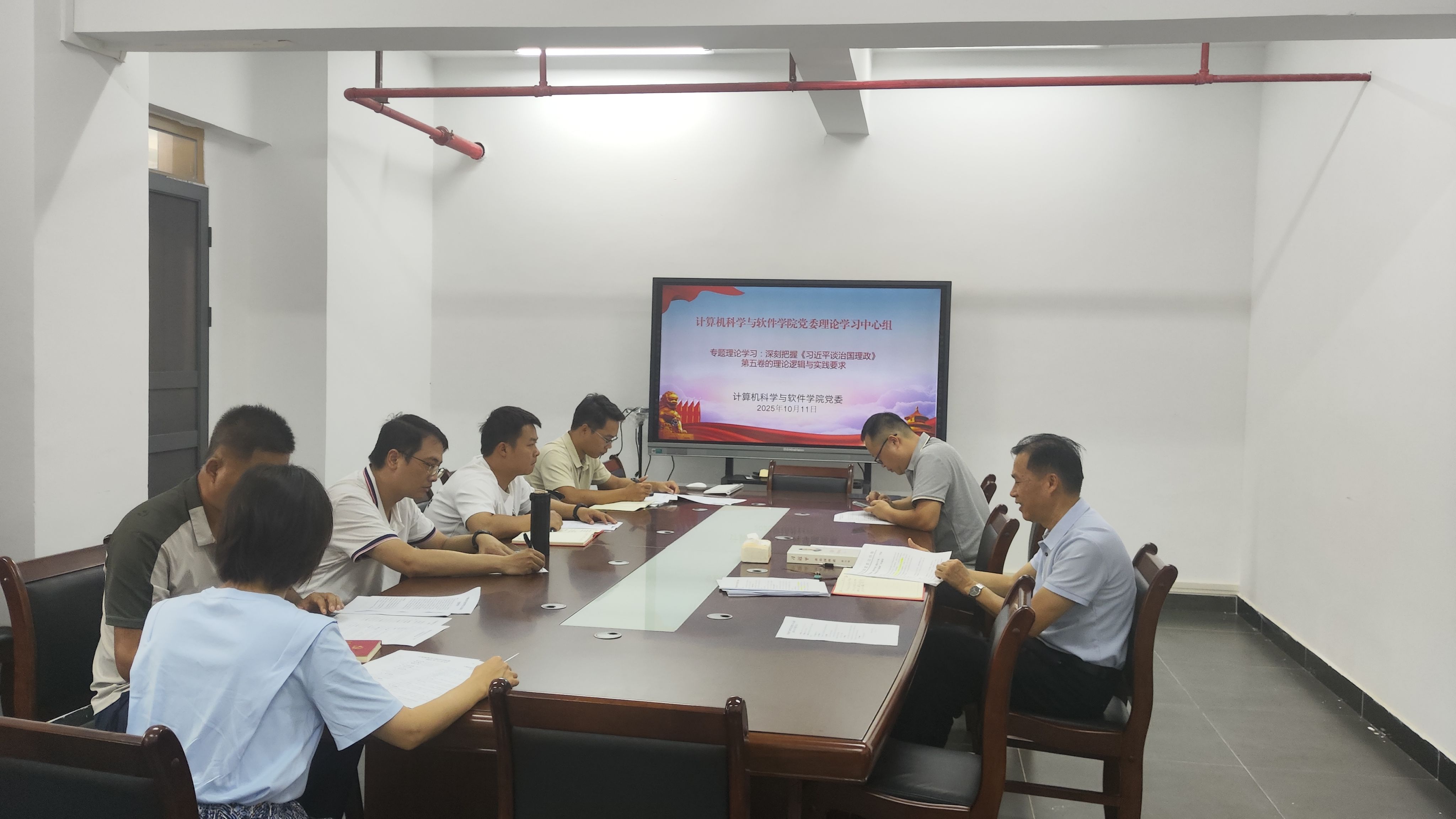 本网讯 2025年10月11日,计算机科学与软件学院党委在学院实训319会议室召开学院党委理论学习中心组(扩大)会议,专题学习《习近平谈治国理政》第五卷。学院党委书记黎天宇主持会议,学院党委领导班子、各党支部书记与专职组织员参加会议。