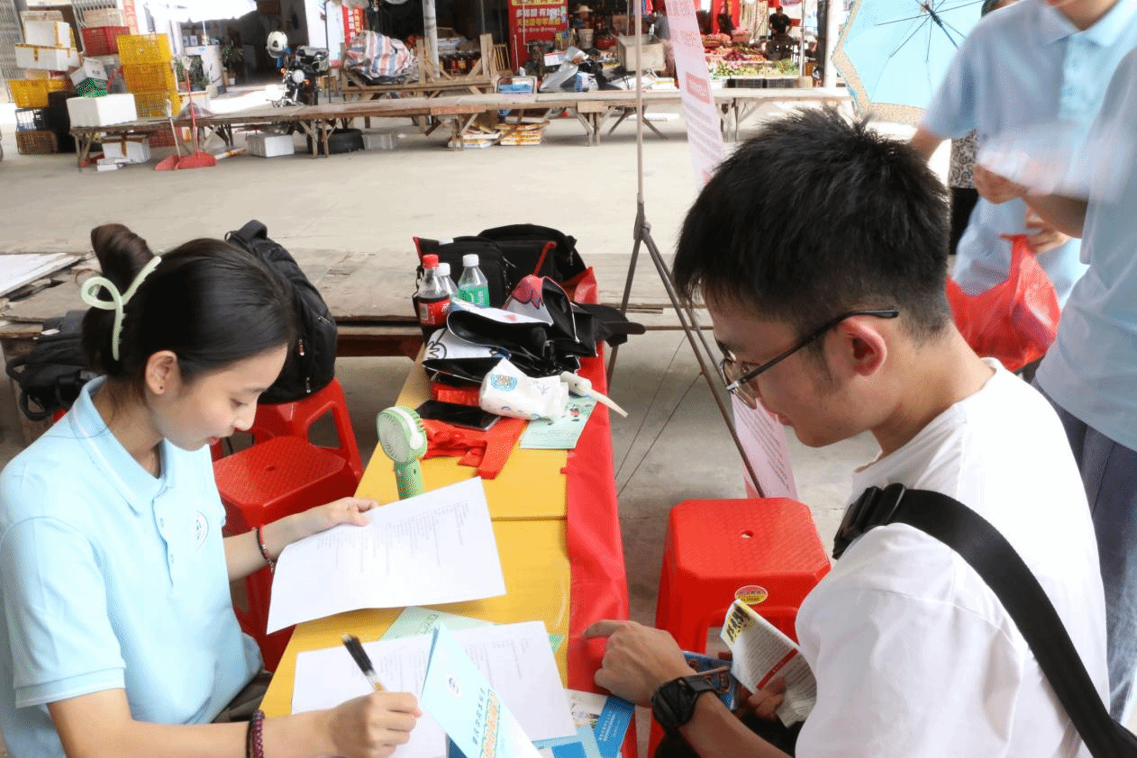 活动现场,宣传队精心布置摊位,通过发放问卷与宣讲政策双管齐下的方式,让资助政策走进群众心中。与此同时,摊位前围满了前来咨询的居民。队员们手持图文并茂的资助宣传手册,用通俗易懂的语言,结合当地学生的实际案例,细致入微地讲解生源地助学贷款的办理流程、国家助学金的评定标准、勤工助学岗位的申请方式等内容。遇到年长不识字的老人,队员们便将政策要点转化为方言俗语,耐心讲解;对于担心贷款还款压力的家长,队员们用往届学生顺利毕业、按时还款的实例,一一打消他们的顾虑。现场互动频繁,不时响起恍然大悟的赞叹声。